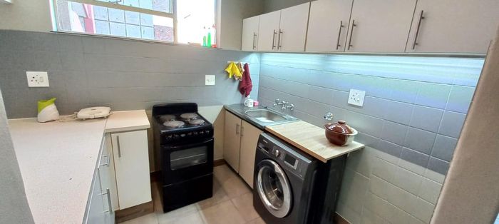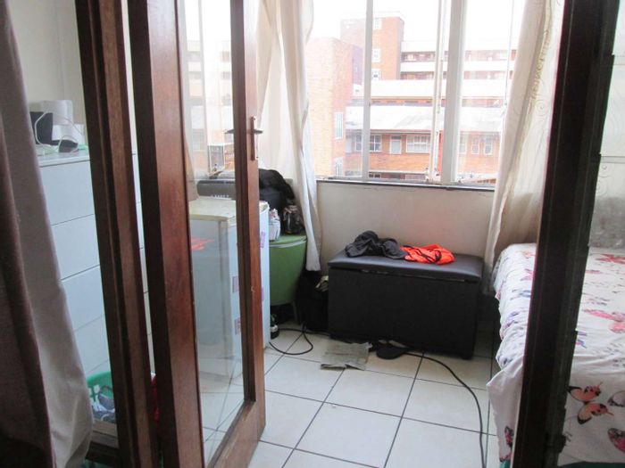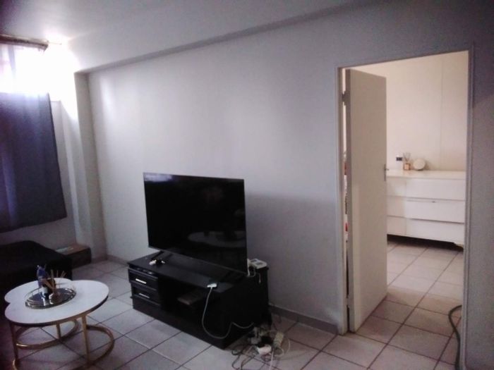 Well-maintained Sunnyside apartment next to Barclay Square and Pretoria campuses, ideal for students or professionals. Main bedroom plus half-room, spacious dining, kitchen, bathroom and covered parking — 1 bed, 1 bath.
