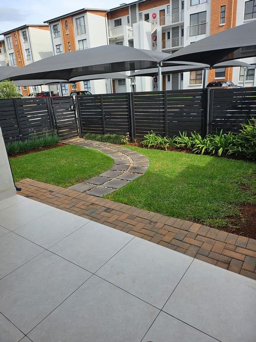 Relaxed suburban living near Irene Village Mall and R21 in gated Galloway Estate, with private garden and clubhouse pool — ground-floor modern 2-bed, 2-bath with two carports.