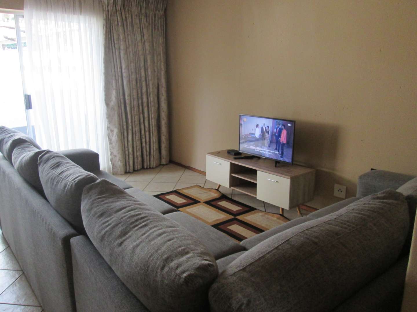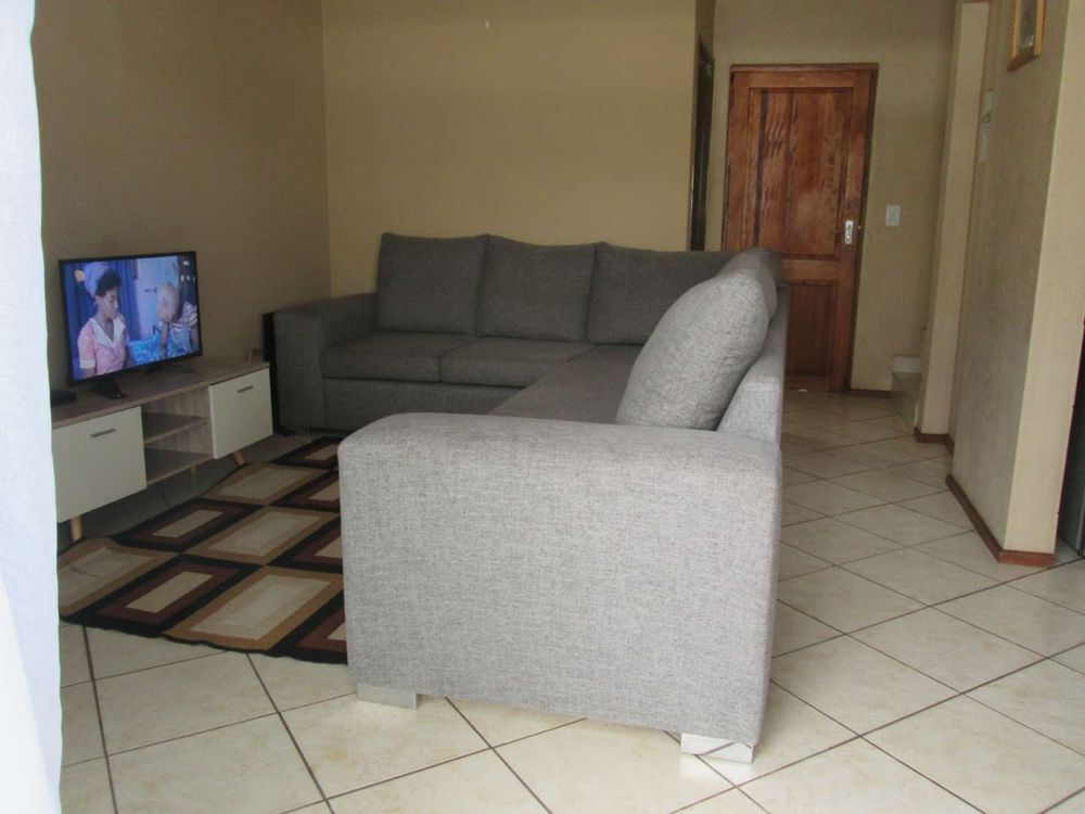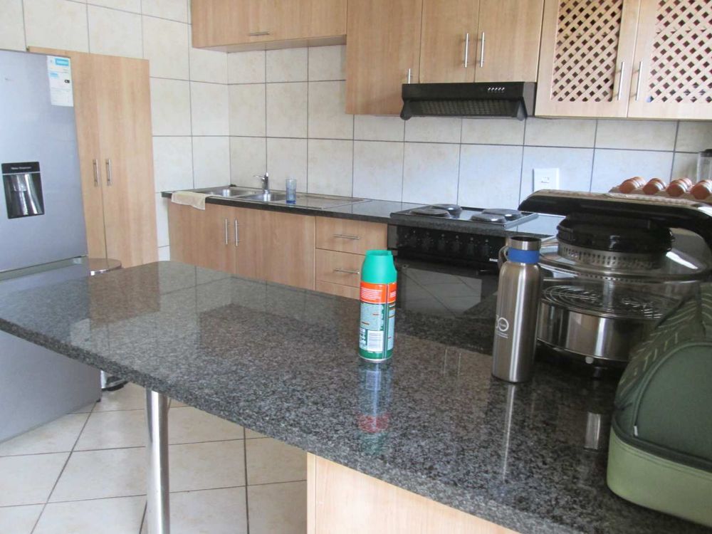 TWO BEDROOMS AND BATHROOM [SHOWER ] UPSTAIRS , GUEST TOILET , SPACIOUS LIVING ROOM, OPEN PLAN KITCHEN , DOWN STAIRS AND BRAAI AREA .