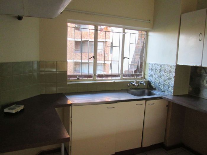 Well-maintained Sunnyside apartment next to Barclay Square and Pretoria campuses, ideal for students or professionals. Main bedroom plus half-room, spacious dining, kitchen, bathroom and covered parking — 1 bed, 1 bath.