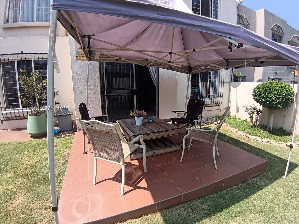 This beautiful and spacious 3 bedroom Duplex house is the prefect family home. Private garden and a lot o space in the back yard garden to relax and enjoy the outdoor sun and garden with a build in braai area and a patio with an enclosed patio area for the winter months. There is an electric garage door on the garage and you enter the house direct from the garage for safety reasons. This house is close to all public transport and all major highways in and around Centurion, Midrand and Pretoria. Close to all shops and malls are close including the Gautrain station in Centurion. Please contact Gerrie to book your viewing.